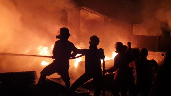 BCO.CO.ID – Kebakaran hebat melanda sebuah gudang penyimpanan ban bekas di sekitar Perumahan Taman Raya Cilegon, Kelurahan Panggung Rawi, Kecamatan Jombang, Kota Cilegon, pada Sabtu malam 22 November 2025.