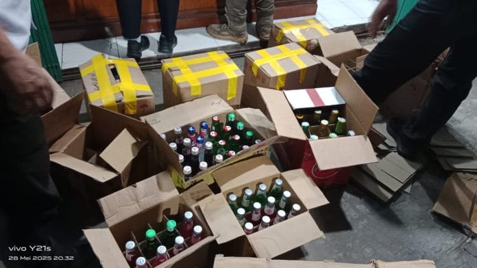 BCO.CO.ID – Sebanyak 347 botol minuman keras berbagai jenis dan merk, disita petugas Dinas Satpol PP Kota Cilegon dari dua wilayah di Kecamatan Jombang dan Kecamatan Purwakarta pada kegiatan dan implementasi pelanggaran Perda Nomor 5 tahun 2001, Rabu malam 28 Mei 2025.