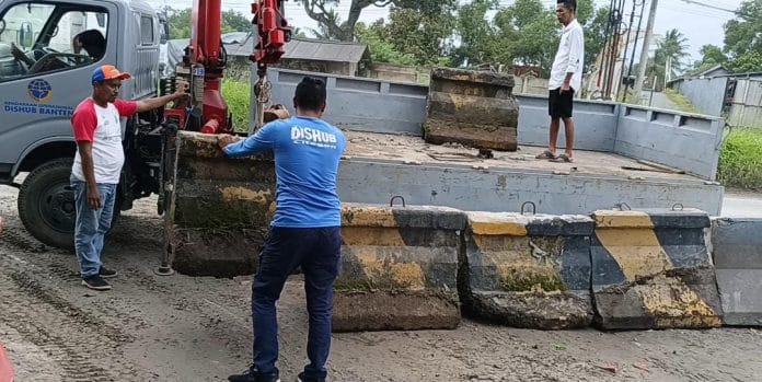 BCO.CO.ID – Tiga buah water barrier atau alat pembatas jalan sementara milik Dinas Perhubungan Kota Cilegon dilaporkan rusak, karena diduga terlindas truk yang keluar dari area tambang di wilayah Temu Giring, Kelurahan Deringo, Kecamatan Citangkil, Kota Cilegon. Alat pembatas jalan sementara itu diketahui dipasang, guna menutup akses jalan dari tambang yang beroperasi di wilayah administrasi Kabupaten Serang. Penutupan akses ini dilakukan Pemkot Cilegon pada Jum’at 6 Maret 2026 kemarin.